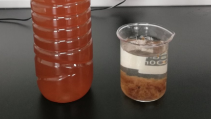 處理方案:加入氫氫化鈉,將原水PH調(diào)到8,噸水投加400ppm脫色劑,300ppm聚合氯化鋁,再加入5ppm陰離子聚丙烯酰胺。