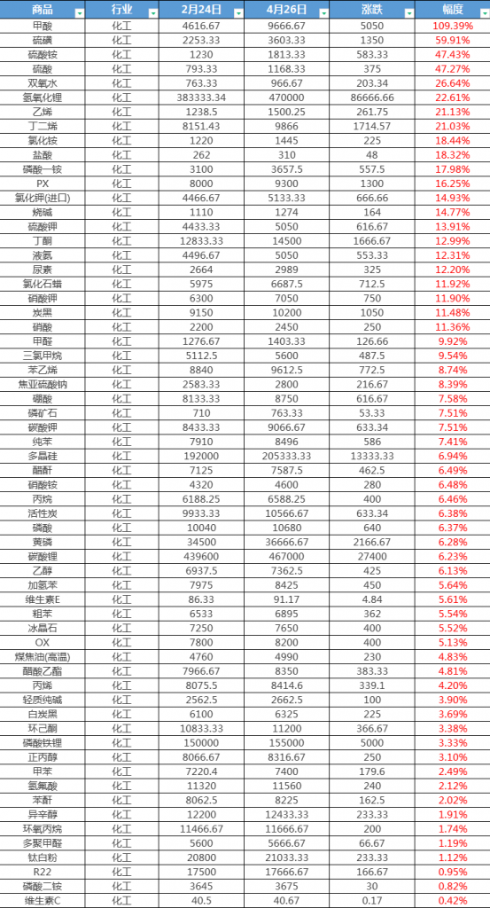 業(yè)內(nèi)人士表示,未來海外化工龍頭的供不應(yīng)和高位運行,將會傳遞到國內(nèi)的化工市場,最終將會形成多米諾效應(yīng),化工原料的持續(xù)漲價已經(jīng)箭在弦上。
