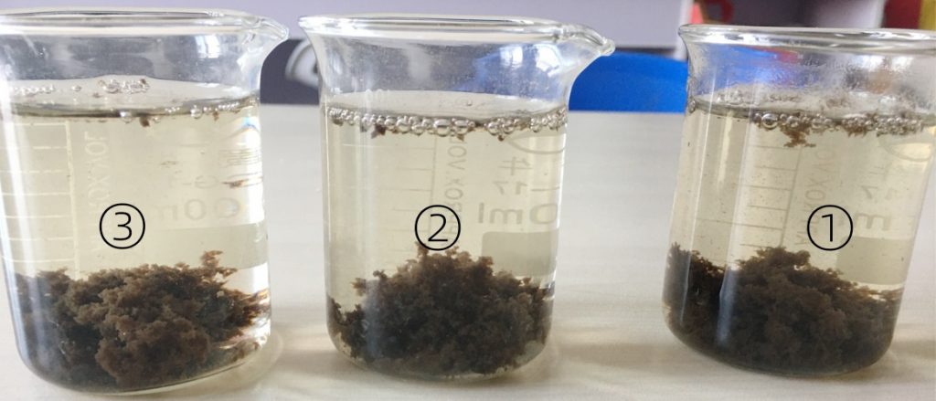 一、原水水樣:液體渾濁呈棕色且有懸浮物