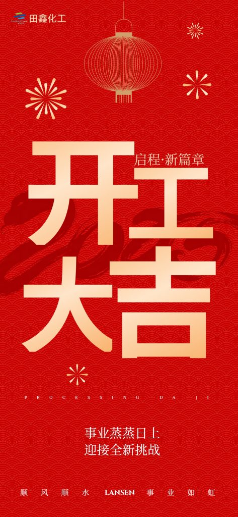 新年好!? ? ? 在度過了一個祥和、溫馨、團聚的春節(jié)之后,無錫市田鑫化工有限公司全體員工已于2025年2月5日(正月初八)正式上班,歡迎您隨時來電咨詢產(chǎn)品相關業(yè)務。
